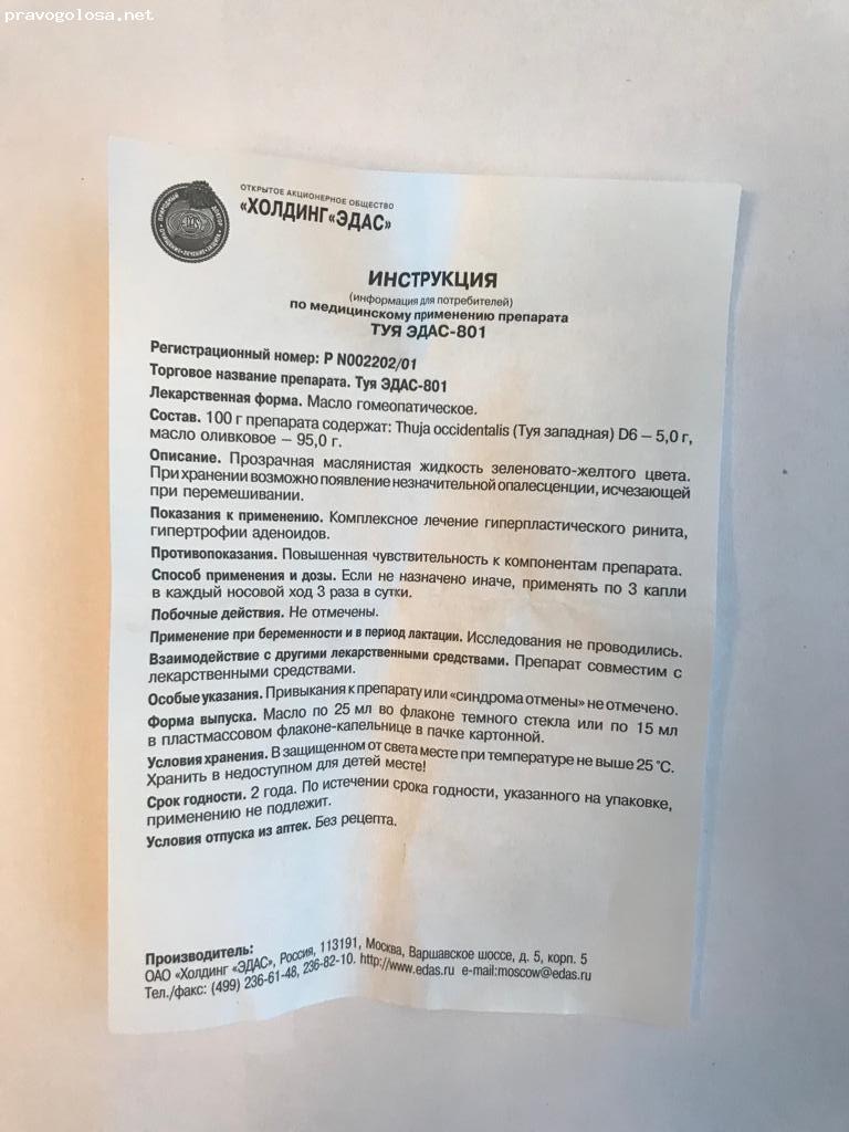 Вообщем, считаю можно рекомендовать эти капли. Пользуюсь несколько месяцев. Со временем стало легче дышать) В носе чувствуется легкий и приятный холодок. Капала 2 раза в день , по несколько капель Подробнее о Туя ЭДАС 801...