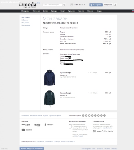 В декабре 2013 столкнулись с такой проблемой - мужу нужен был зимний пуховик, а в магазин не было возможности попасть: он на работе, а я с ребенком. Почитала отзывы об интернет магазине Ламода, довольно часто его рекламируют по телику, вот и решила попробовать заказать.
