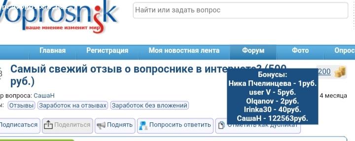 На вашем сайте они также оставили свои отзывы. Суть их заработка на Voprosnik.ru проста. Они за большие деньги - каждый их пост-отзыв оплачивает админ СашаН стоит от 200 до 2000 рублей. Пишут сами, публикуют Скриншоты любых упоминаний о Вопроснике с других сайтов. Деньги в кармане.