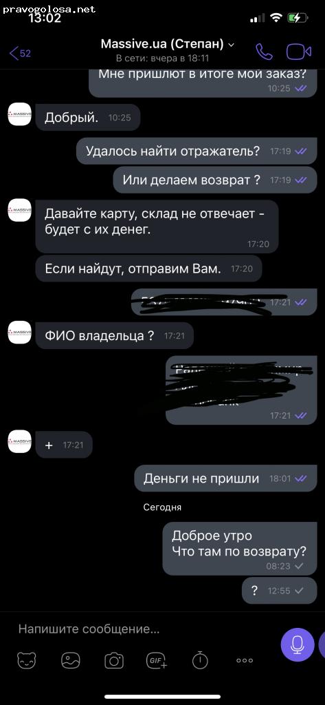 Интернет-магазин Massive.ua Херсон Положительный отзыв