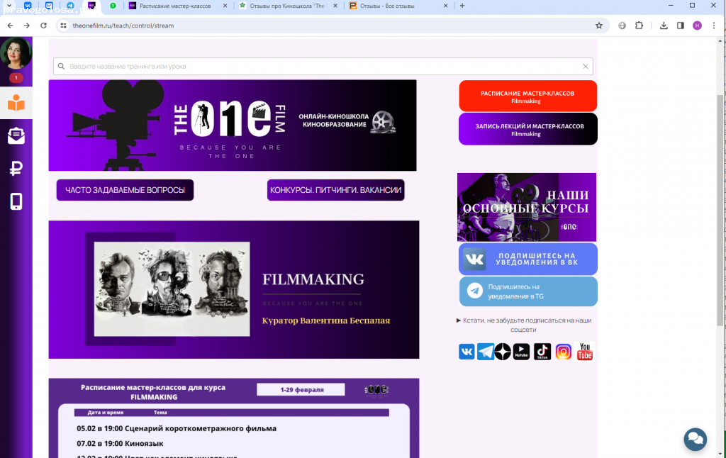 26-11-2025Обучаюсь в киношколе TheOneFilm на курсах по сценаристике и продюсировании. Обучение в киношколе примечательно тем, что осуществляется опытными преподавателями на практических задачах, с доступом к огромнейшей базе знаний. Также д...
