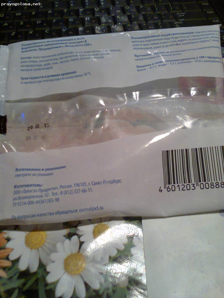 Здравствуйте-купила в Пятёрочке-Пельмени традиционные-Красная цена-65.95 -Б-правильный выбор-получилось что такого правильного выбора не дай Бог-извините меня -гадость такая-что до сих пор остался неприятный осадок от этих пельменей-одно тесто и ни какого мяса или похожего на него нет такая то размазня-внутри-даже слов нет кому такую гадость продают-за кого считают народ -свиней лучше кормят