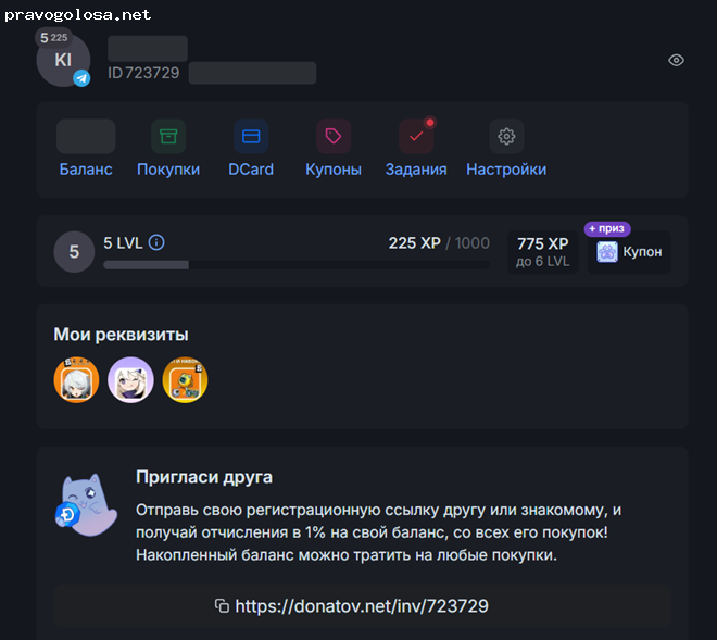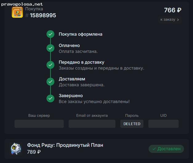 Магазин игрового доната (donatov.net) Москва Положительный отзыв