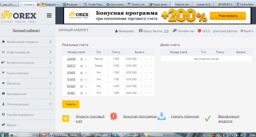 Пишу как "попавший" на 60% от внесенного депозита и так и не получивший никаких внятных объяснений как такое произошло при договоренности растраты не более 20% от всей суммы. Претензий никаких не имею, знал на что шел, но предупредить считаю нужным. Учитесь на чужих ошибках. Скриншоты с сайта 9 часов утра и 17 часов вечера. Счета были заблокированы и на телефонные звонки отвечали только обещаниями перезвонить в течении всего дня. Потом сказали, что долго обновляются данные.... Ребята Вы предоставляете услуги по торговле на рынке Форекс, информация должна обновляться мгновенно. Промедление смерти подобно в этом деле! Подробнее о STForex...