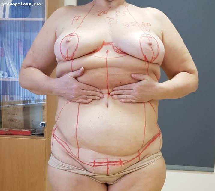 Обратилась к доктору 12.12.2019 (вес 105,0 кг), Каримову Рустему Фанильевичу, с проблемой избыточной жировой ткани, фартука на животе, иссечение шрама по гинекологии (полостная операция), коррекция формы груди с подтяжкой на имплантах.