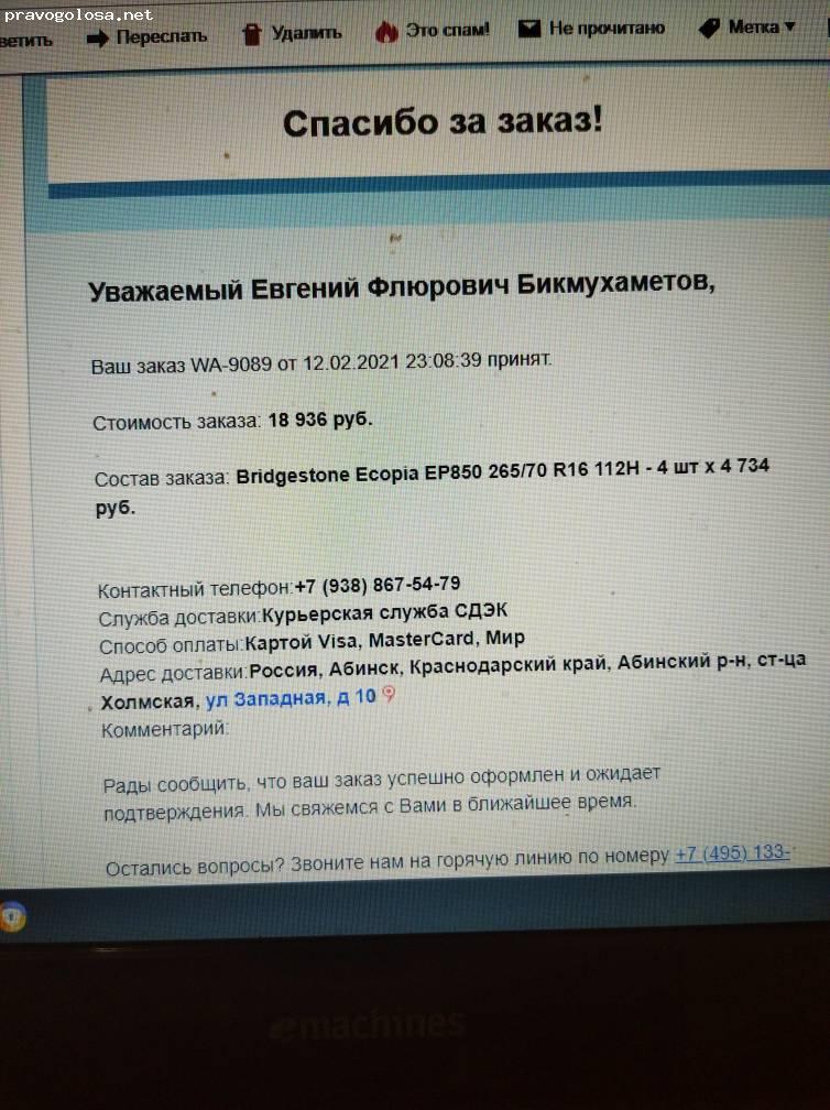 Прилагаю чек на шины которые хотел приобрести и переписку. Подробнее о PROTECTOR-M.RU...