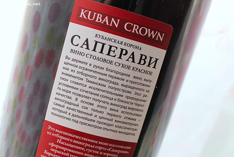 Но вот есть, оказывается, исключение из правил и предпочтений – довелось попробовать мне сухое красное Саперави "Кубанская Корона".