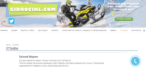 На портал pravogolosa.net, поступила заявка на проверку интернет магазина Gidrocikl.com